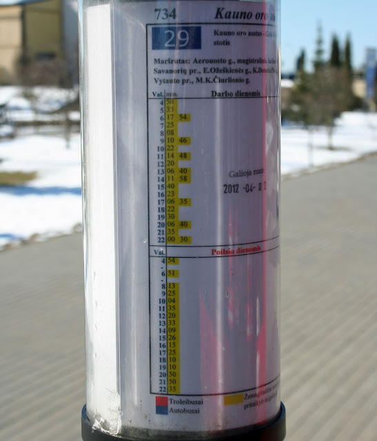 Halvin vaihtoehto on kaupunkibussi 29, jossa kyyti maksaa vain 2 Lt (alle euron). Bussipysäkki on terminaalista vasemmalla puolella.